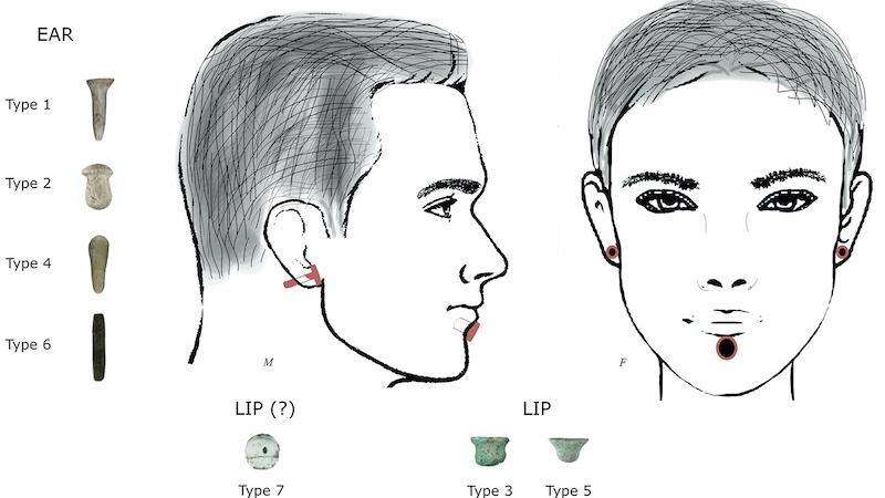 Bu durum, çeşitli modern ve geçmiş kültürlerdeki dudak piercing’i örnekleriyle tutarlı olarak, alt kesici dişlerde aşınma tespit edilen iskeletlerin analizi ile destekleniyor.