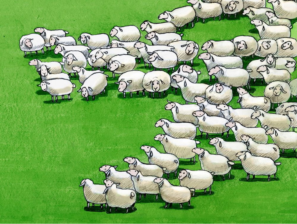 Küçük ağıllarda sıkışan koyunlar birbirlerine ya da yemliklere çarpıp irkiliyorlardı. İlk korkan kişi biraz acele ederek birkaç çarpışmaya neden olacak ve bir domino etkisi başlatacaktır. Çok geçmeden bilinmeyenin korkusu tüm sürünün çılgınca koşmasına neden olacaktı.