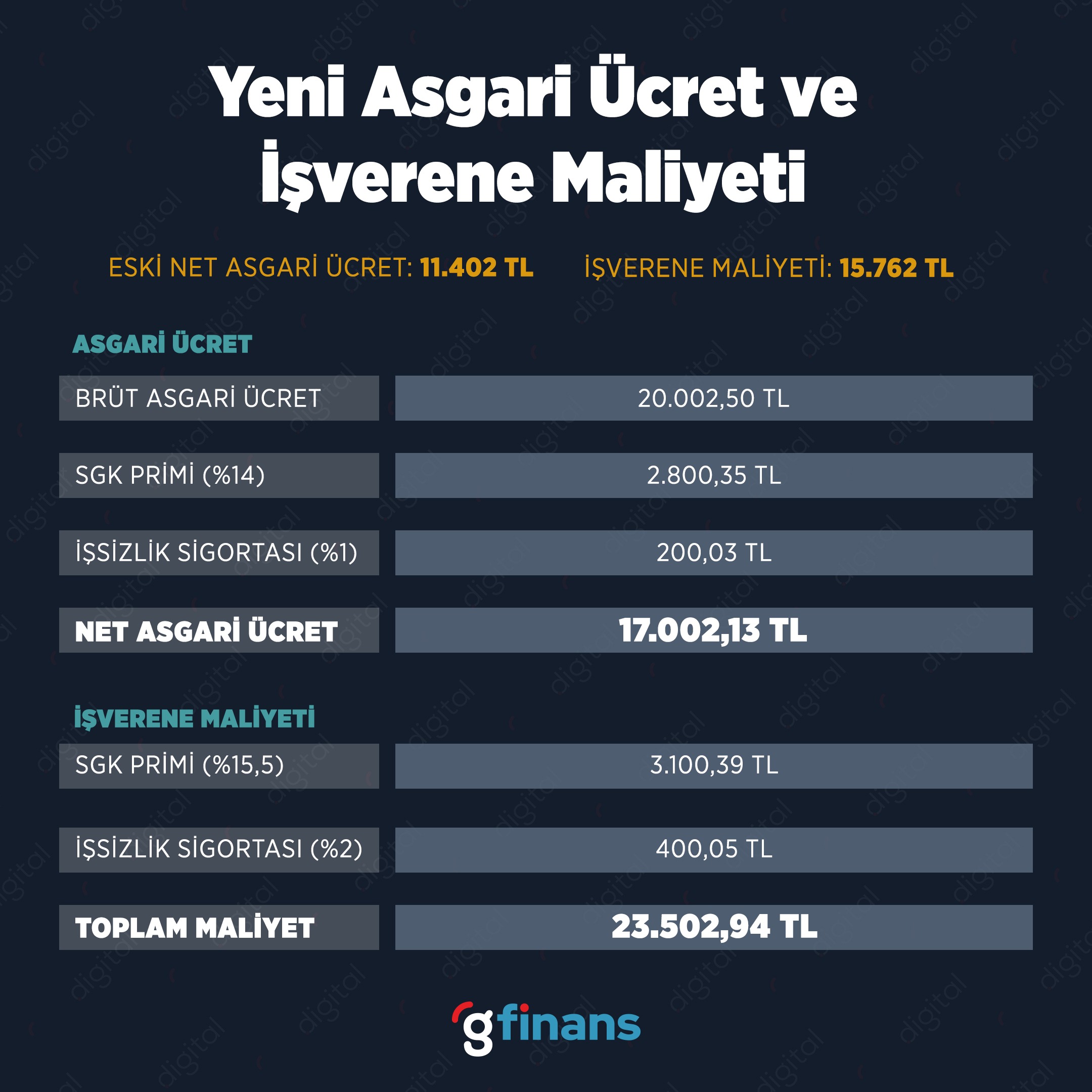 Asgari ücretle çalışan 7 milyon çalışanı doğrudan, tüm çalışma hayatını ise dolaylı olarak ilgilendiren 2024 asgari ücret belli oldu. Çalışma ve Sosyal Güvenlik Bakanı Vedat Işıkhan, asgari ücretin 17 bin 2 TL olduğunu açıkladı. İşverenlere ücret desteği ise 700 TL olurken brüt asgari ücret tutarı ise 20.002 TL olarak gerçekleşti. .
