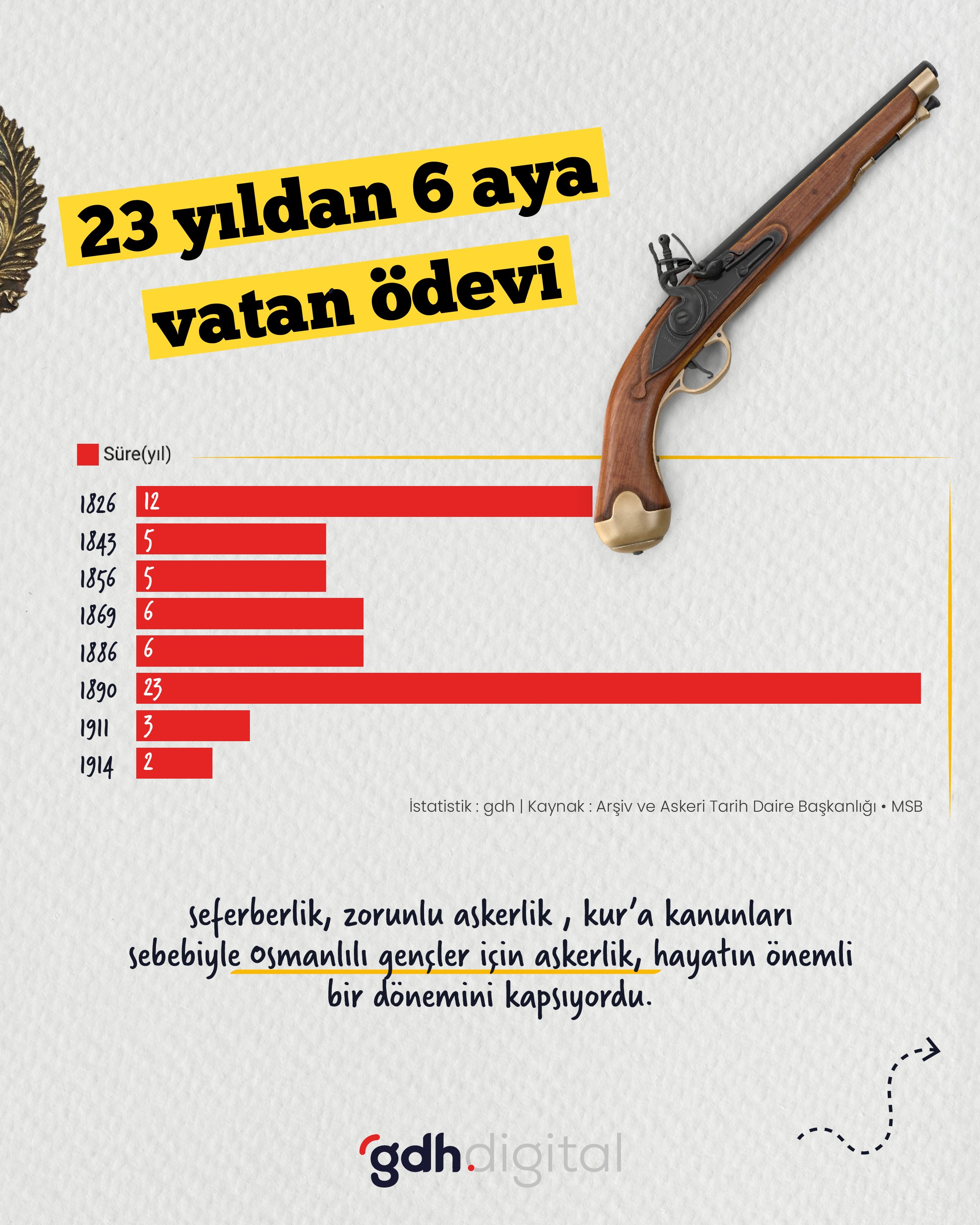 Zorunlu askerlik uygulamasının doğduğu zemin ve sonrasında Osmanlı toplumunun vatani ödevi seneler içerisinde farklı sürelerle tarihte yer almıştır.