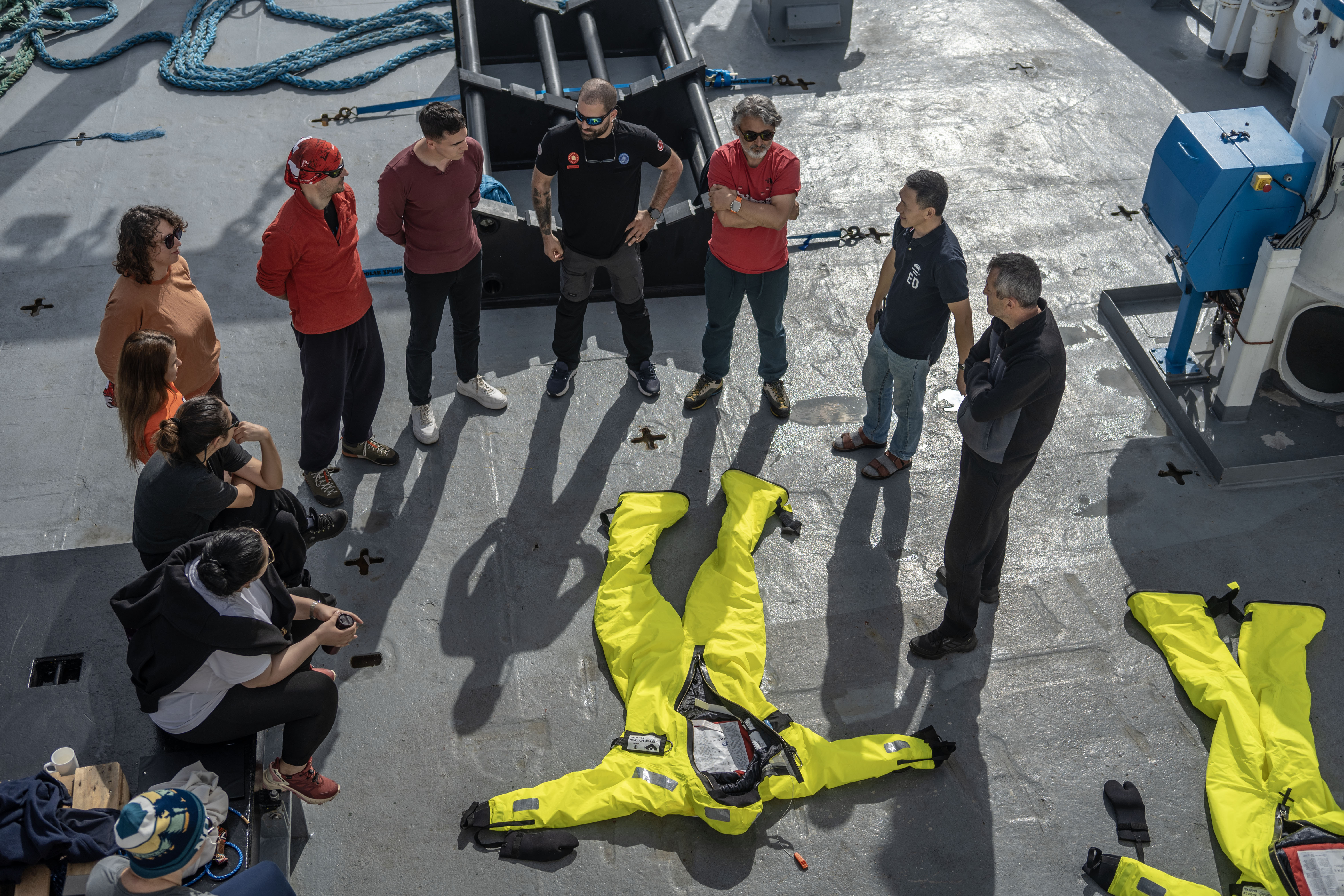 “Gemide, denizde hayatta kalma eğitimlerini veriyoruz. Gemi seyrine başlamadan önce tüm sefer katılımcılarının gemi, deniz koşullarına hazırlıklı olmasını ve emniyet kurallarına hakim olmasını bekliyoruz. Bu kapsamda halihazırda dalma giysisi (immersion suit) eğitimi verildi. Burada ana amaç bütün sefer katılımcılarının bütün emniyet kurallarına hakim olması ve olası bir durumda bunları uygulayabilecek kapasitede olmasını sağlamak.” dedi.