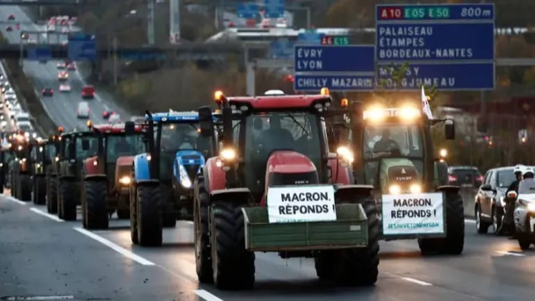 Diğer ülkelerde olduğu gibi, tarım sekörüne desteğin azalması, artan yakıt ve üretim maliyetlerinin yanı sıra Yeşil Anlaşma ile gelen yeni standartların ithal edilen ürünlere uygulanmamasını protesto etmek için Paris'te traktörleri ile gösteri düzenledi.