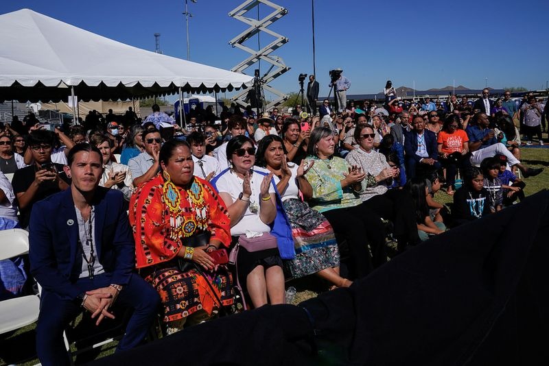 Amerikan yerlisi çocukların gittiği Gila Crossing adlı okuldaki törene Tulalip Kabilesi vatandaşı ve Ulusal Amerikan Yerlileri Yatılı Okul İyileştirme Koalisyonu'nun Başkanı Deborah Parker ve bölgede yaşayan çok sayıda Amerikalı yerli topluluk üyesi katıldı.