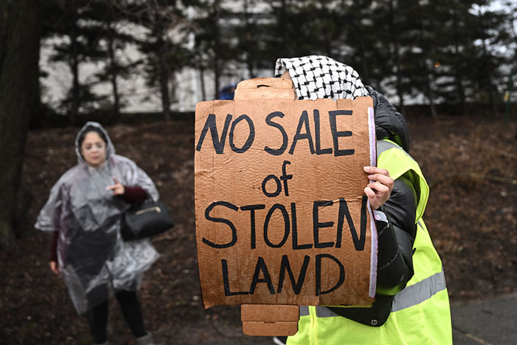 Göstericiler “Çalınmış toprakları satamazsınız", “Bu toprak hırsızlığıdır”, “Çalınmış topraklar üzerinde iş yapmayın” pankartları taşıması da dikkati çekti.