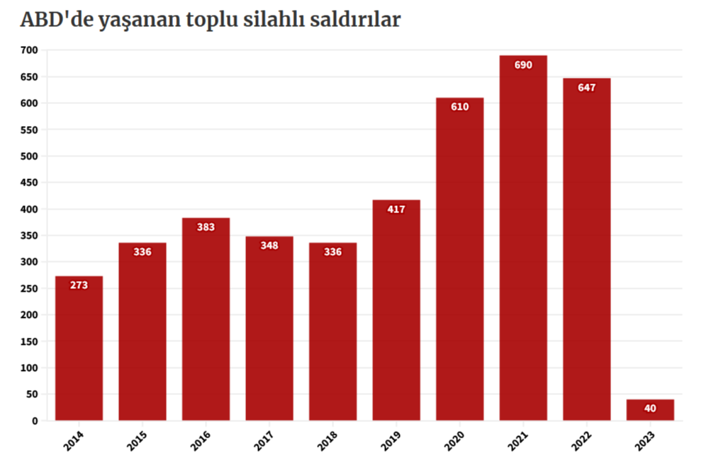 Bu faktörlerden ilki bireysel silahlanma. Amerikalılar’ın eskiye kıyasla daha fazla silahı var. Örneğin silah satışları 2022’de 23 milyona ulaştı, ki bu bir rekor.
