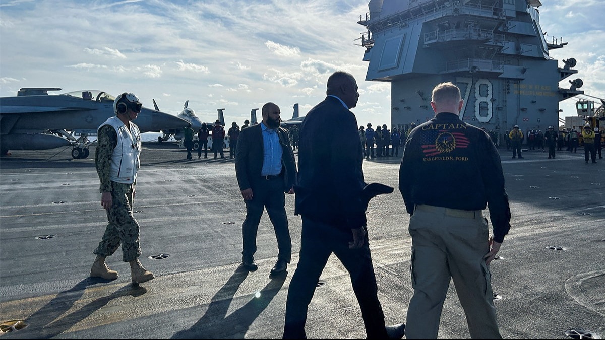 ABD Savunma Bakanı Lloyd Austin, dünyanın en büyük uçak gemisi olan ve Akdeniz'de görev yapan USS Gerald R. Ford’u ziyaret etti. Dev gemi, çatışmaların yayılmasını önlemek için caydırıcı bir güç olarak bölgede bulunuyor.