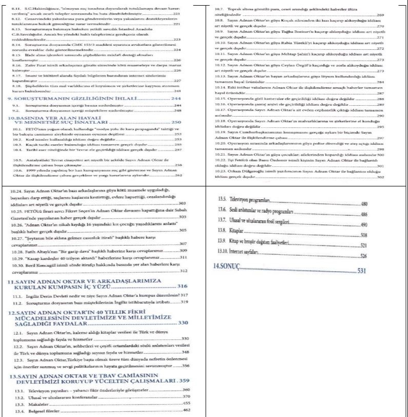 Adnan Oktar organize suç örgütünün güncel yapılanmasına yönelik açılan soruşturmada yeni detaylar ortaya çıktı. Oktar'ın örgüt üyelerine 'Kumpas' adında bir kitap yazılması talimatı verdiği öğrenilirken, örgüt üyesi avukatların lobi çalışmaları kapsamında Adnan Oktar'ın güncel olaylarla ilgili yorumları ve kitaplarını içeren belgeleri dönemin Enerji ve Tabi Kaynaklar Bakanı Fatih Dönmez'e, Cumhurbaşkanı Erdoğan'ın kızı Esra Erdoğan Albayrak'a, Genelkurmay Başkanı Yaşar Güler'e ve Yargıtay Başkanı İsmail Rüştü Cirit'e kargoyla gönderdiği ortaya çıktı.