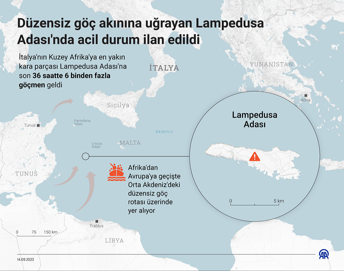 Lampedusa Adası'na 11-17 Eylül haftasında toplamda 11 bin civarında düzensiz göçmen gelirken, bunların 6 binden fazlası 13-14 Eylül'de sadece 36 saatlik süreçte ulaşmıştı. Ada Belediyesi "acil durum" ilan etmişti.