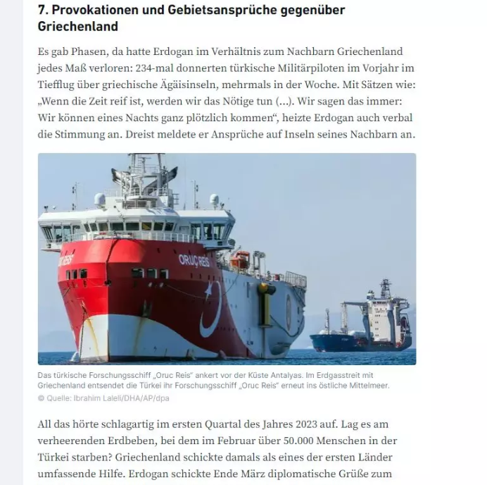 7. Yunanistan’a karşı “provokasyonlar” ve “toprak iddiaları”: Yeni bir Türk hükümetinin Yunanistan ile ilişkileri düzeltmesi gerektiği belirtildi, Ankara’nın “ihlallerinden” şikayet edildi.
