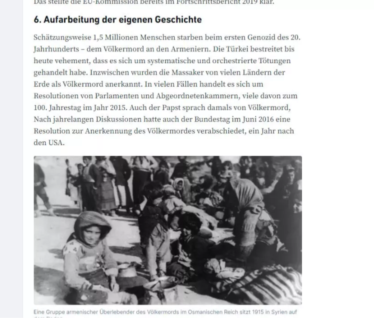 6. Sözde “Ermeni soykırımı”: Türkiye’nin kendi tarihi ile “yüzleşmesi” gerektiği ve yeni Türk hükümetinin “uluslararası toplumun saygın bir üyesi” olabilmek için bu konuyla ilgilenmesi, kısacası soykırım suçlamasını kabul etmesi gerektiği belirtildi.