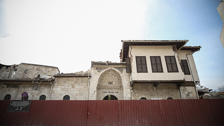 Kazı başkanı Muhammet Arslan, depremlerin kentin simgelerinden Habib-i Neccar Camisi'nde büyük yıkıma yol açtığını belirterek, "Maalesef harimin üzerini kapatan üst örtüsü tamamen içeriye göçmüş, son cemaat yeri yıkılmış, minaresi de tamamen yıkılarak avluyu enkaz haline getirmiş." dedi.