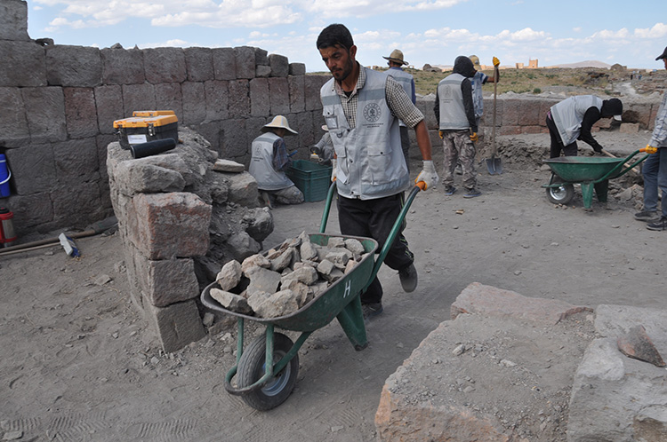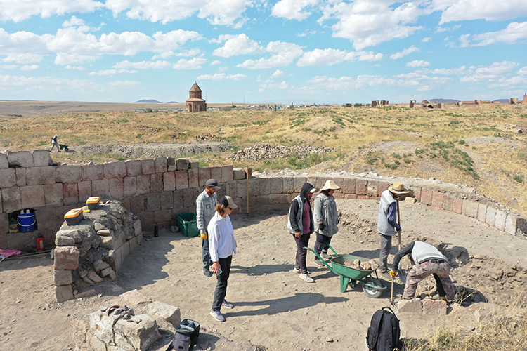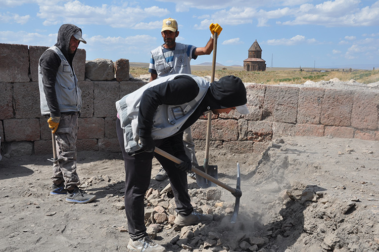 UNESCO Dünya Miras Listesi'ndeki antik kent Ani Ören Yeri'nde, tarihi eser ve kalıntıların gün yüzüne çıkartılması amacıyla bilim insanları, sanat tarihçiler, arkeologlar, mimarlar ve öğrenciler 5 noktada kazı çalışması yürütüyor.