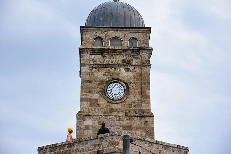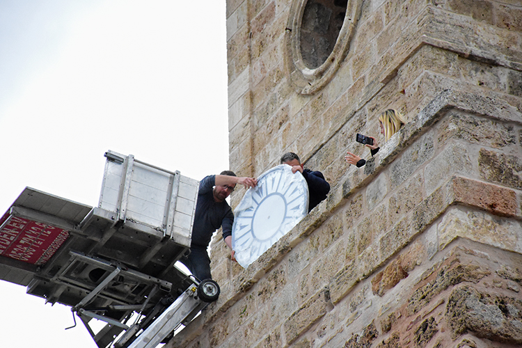 Milattan sonra 9. yüzyılda Bizans döneminde inşa edilen ve 2. Abdülhamid döneminde saat kulesine çevrilen eserin, aslına uygun saat mekanizması ve kadranları vinç yardımıyla kuleye yerleştirildi.