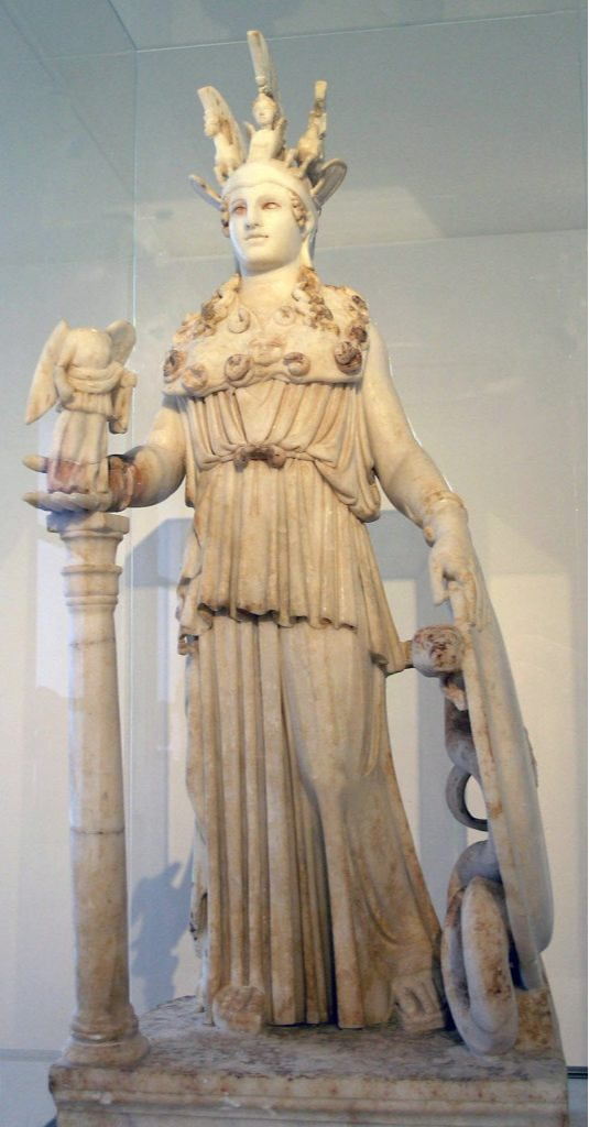 Phidias, bu tekniği kullanarak devasa figürler tasarlamasıyla ünlüydü; en ünlü eserleri arasında, Zeus heykeliyle hemen hemen aynı zamanlarda Atina’daki Parthenon için yaptığı, Athena’ya adanan devasa heykel de vardı.