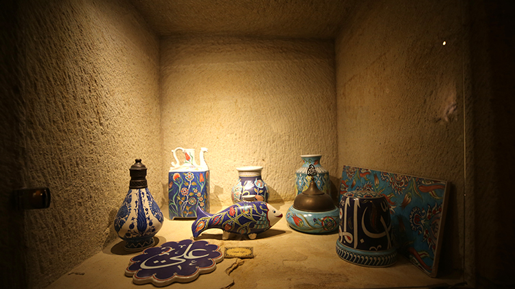 "Hem dedelerimizden gelen çömlekler hem de son 30 yılda atölyelerimizde oluşturduğumuz koleksiyon ile müze oluşturuldu. Yapım aşamasında yer altı şehirlerinden esinlendik. Geçmiş uygarlıklar burada tüf kayaları oyarak yer altı yerleşim yerleri yapmışlar. Bu müzeyi kaya oyma usulü ile yaptık. Bu konsepti ile dünyadaki ilk ve tek yer altı seramik müzesi olarak bilinmektedir. Milattan önce 5 bin yılından başlayıp, Selçuklu, Osmanlı dönemleri ve günümüz seramik sanatçılarının eserlerinin bulunduğu bölümler var. Atölyemizde kendi yaptığımız özel parçaları da burada sergiliyoruz. İlk yıllarda tanıtım dönemi olduğu için ziyaretçi sayımız oldukça düşüktü. 2019'da yüksek bir sayıya ulaştık. Kovid-19 salgınında ziyaretçi sayımız düşmeye başladı. Daha sonra hızlıca toparlanma sürecine girildi. 2021 yılında yaklaşık 170 bin, 2022 yılında ise 230 bin ziyaretçi kabul ettik."