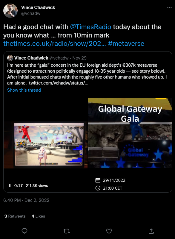 Bu haftanın başında, Avrupa Komisyonu'nun Dış Yardım Departmanı, gençleri çekmek için Metaverse'de bir partiye ev sahipliği yaptı.