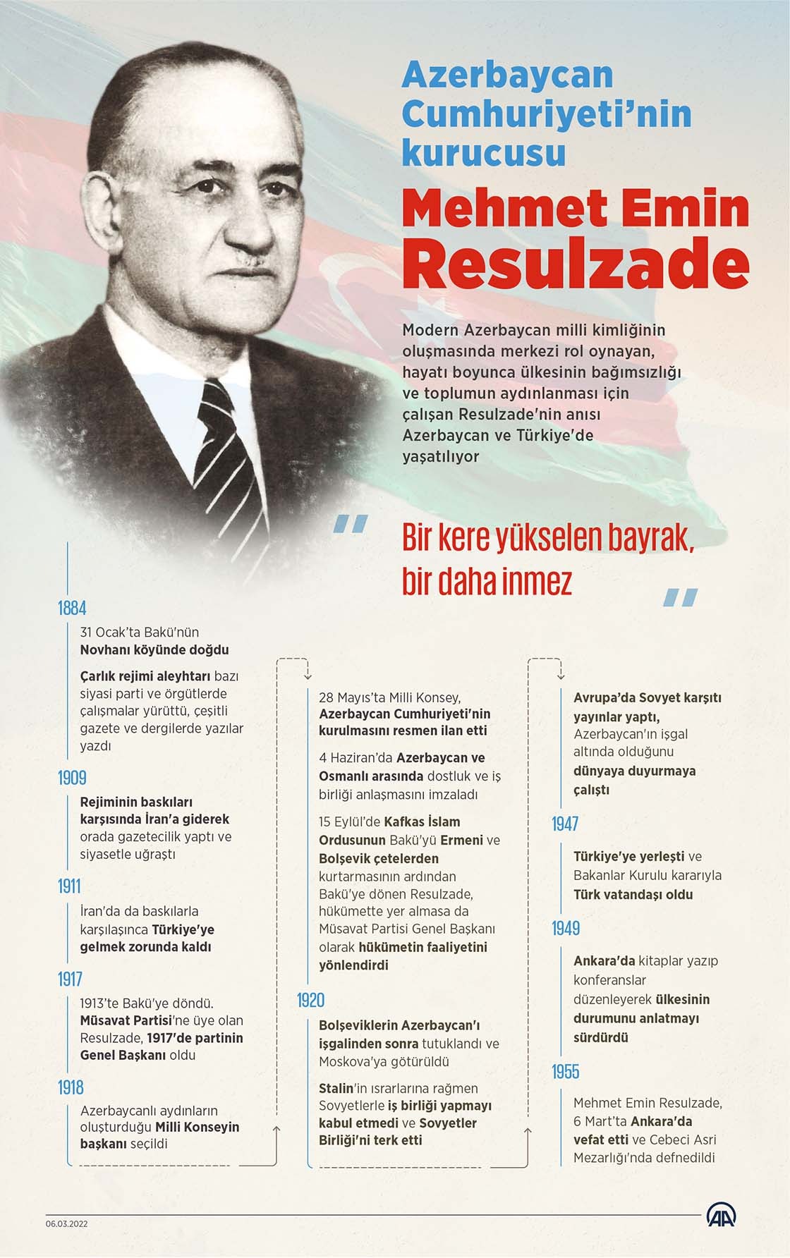 Müslüman doğunun ilk demokratik cumhuriyeti kabul edilen ve 28 Mayıs 1918'de bağımsızlığını ilan eden Azerbaycan Cumhuriyeti'nin kurucusu Mehmet Emin Resulzade, 140 sene önce bugün doğmuştu.