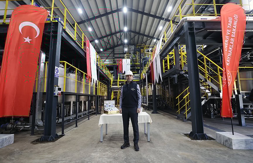 "Bu çerçevede biz de uzun yıllara dayanan araştırmalarımızın neticesinde Eskişehir Beylikova’da, şu anda içinde bulunduğumuz tesis ve etrafındaki sahalarda dünyanın tek yatakta en büyük ikinci rezervini keşfetmiş durumdayız. Eskişehir'deki maden işletmesi elektrikli araçlar ve yenilenebilir enerji teknolojileri konusunda Türkiye'yi çok önemli bir noktaya taşıyacak. Endüstriyel tesise geçilmesiyle birlikte Türkiye NTE üretebilen 5 ülkeden biri olacak ve dünyada önemli bir tedarikçi konumuna gelecek. Burada yaklaşık 690 milyon tonluk bir cevher var. Biz bu kaynağın işletilmesi ile alakalı ilk etapta bir pilot tesis kurduk ve geçtiğimiz nisanda Sayın Cumhurbaşkanımız buranın açılışını yapmıştı. İlk etapta 1200 tonluk bir cevher işleyeceğiz. Bu tesisten aldığımız neticeler sonucunda da yılda 570 bin tonluk cevheri işleyecek ve yaklaşık yılda 10 bin tonluk nadir toprak oksidi üretecek endüstriyel tesisi kurmayla alakalı çalışmalarımıza devam ediyoruz."