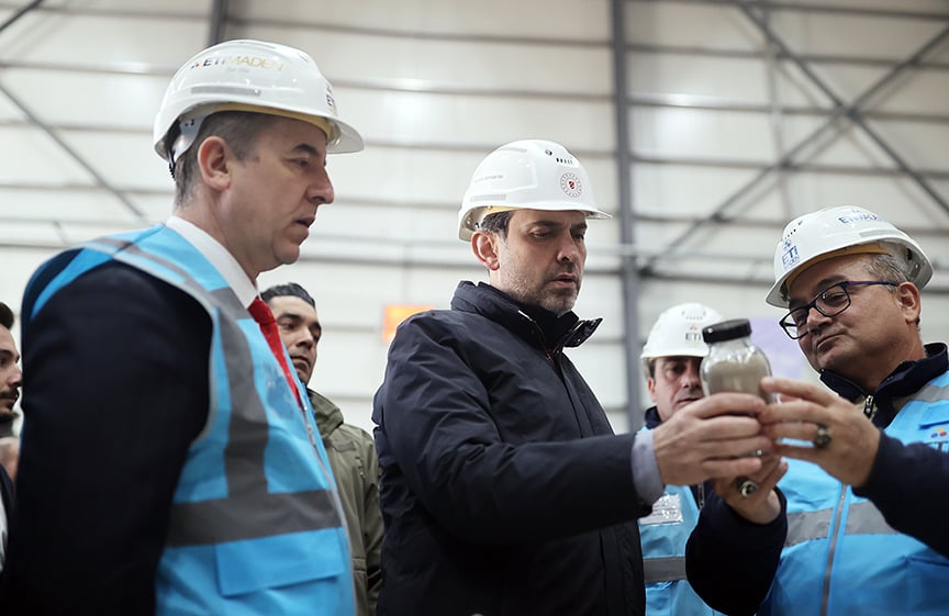Enerji ve Tabii Kaynaklar Bakanı Alparslan Bayraktar, Eskişehir Beylikova Florit, Barit ve Nadir Toprak Elementleri İşletme Tesisi'nde incelemelerde bulundu.