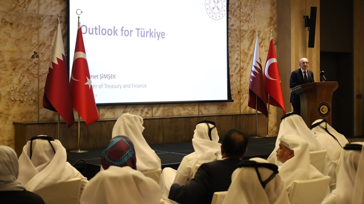 Şimşek, Katarlı iş insanları ve yatırımcılara, Türkiye'nin yeni ekonomi politikaları ve Orta Vadeli Program'daki hedef ve reform hazırlıklarını anlattı.