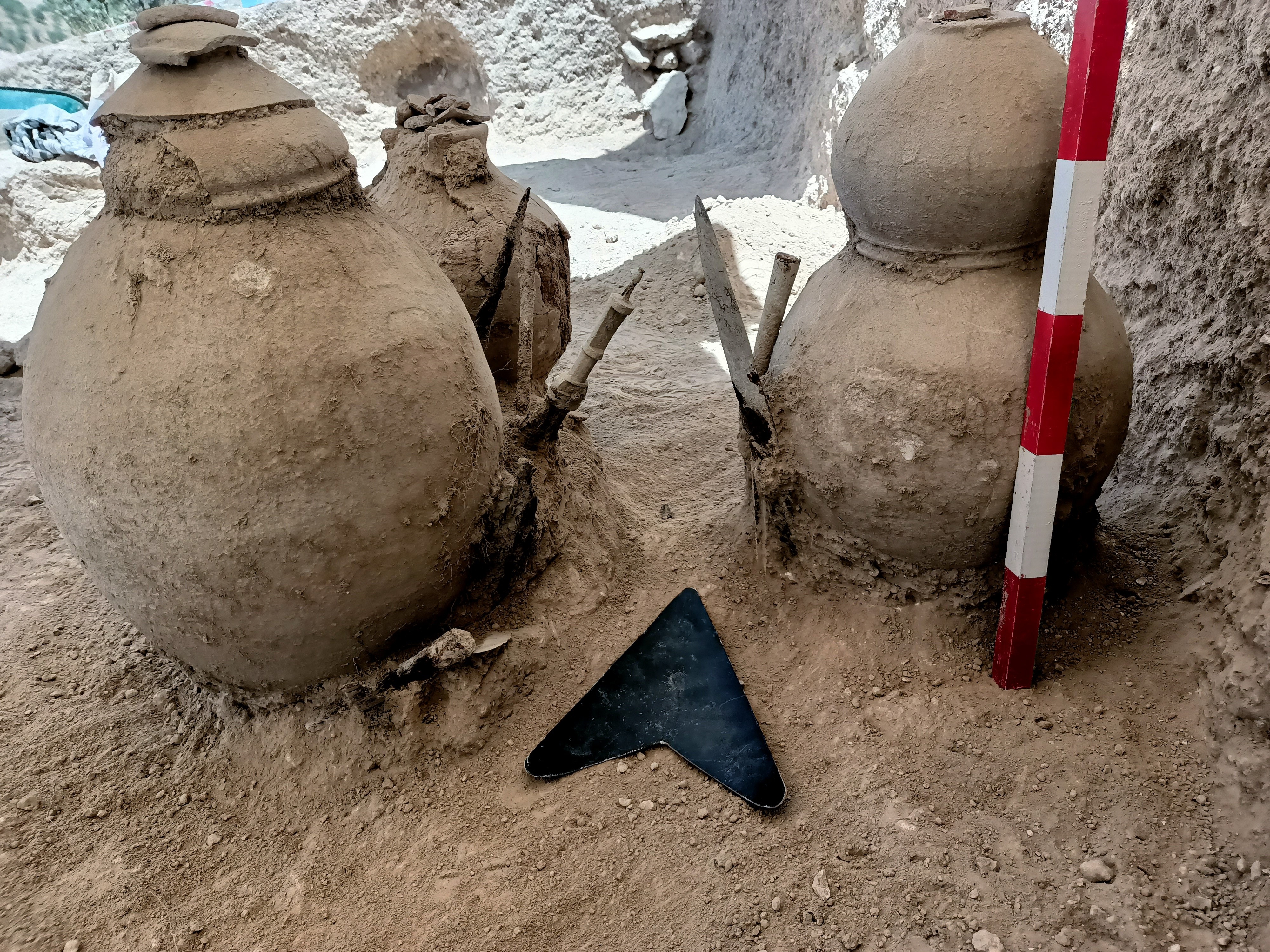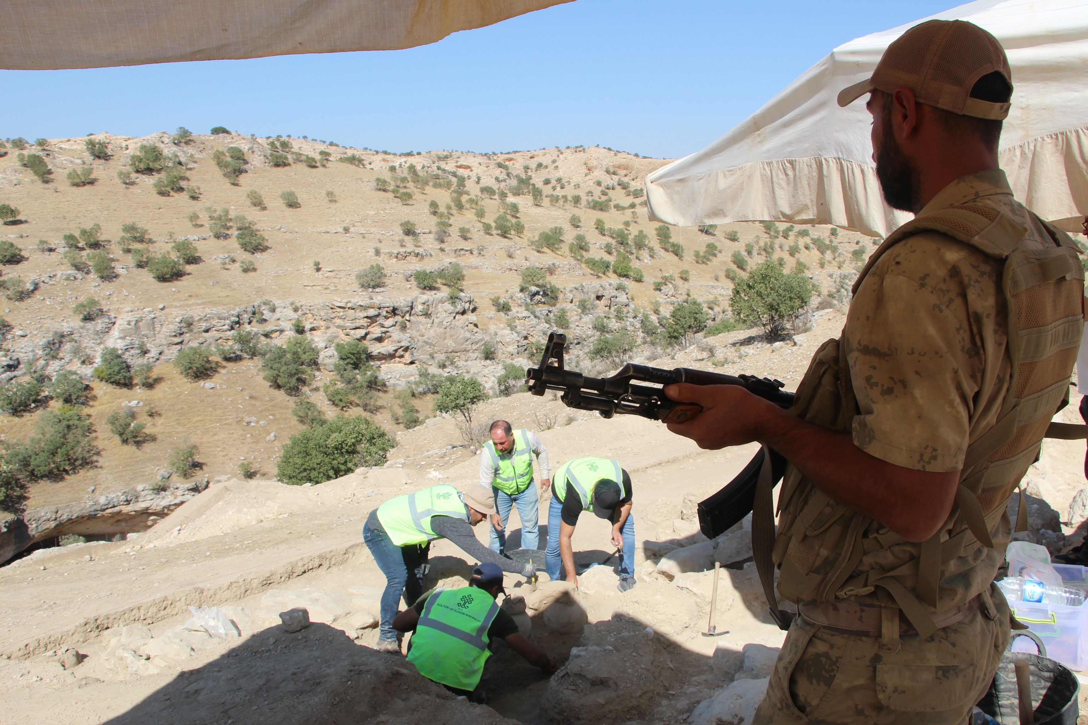 Ekiplerin yaklaşık 5 kilometre boyunca güvenlik korucuları eşliğinde yürüyerek ulaştığı sarp kayalıklar üzerinde Dicle Nehri’ne hakim noktada kurulan nekropolde, ölen kişinin yakıldıktan sonra kalan kemiklerinin konularak gömüldüğü Urne mezarlarda ölen kişiye ait olduğu düşünülen mızrak, ok uçları, kama, bıçak, kılıç ve çok çeşitli savaş malzemeleri çıkarıldı.