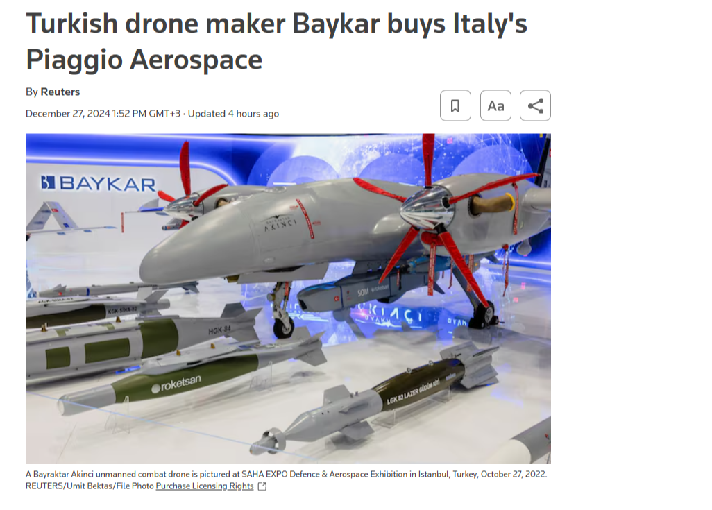 BAYKAR'ın İtalyan havacılık devini satın alması dünya medyasında yankı uyandırdı