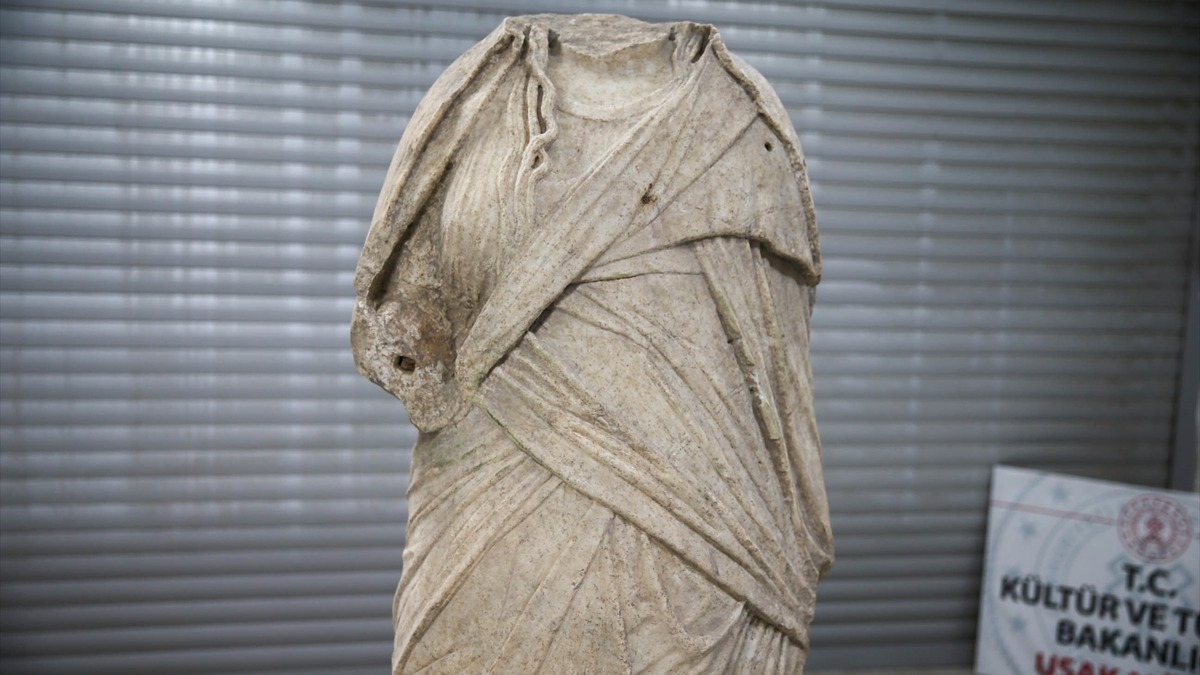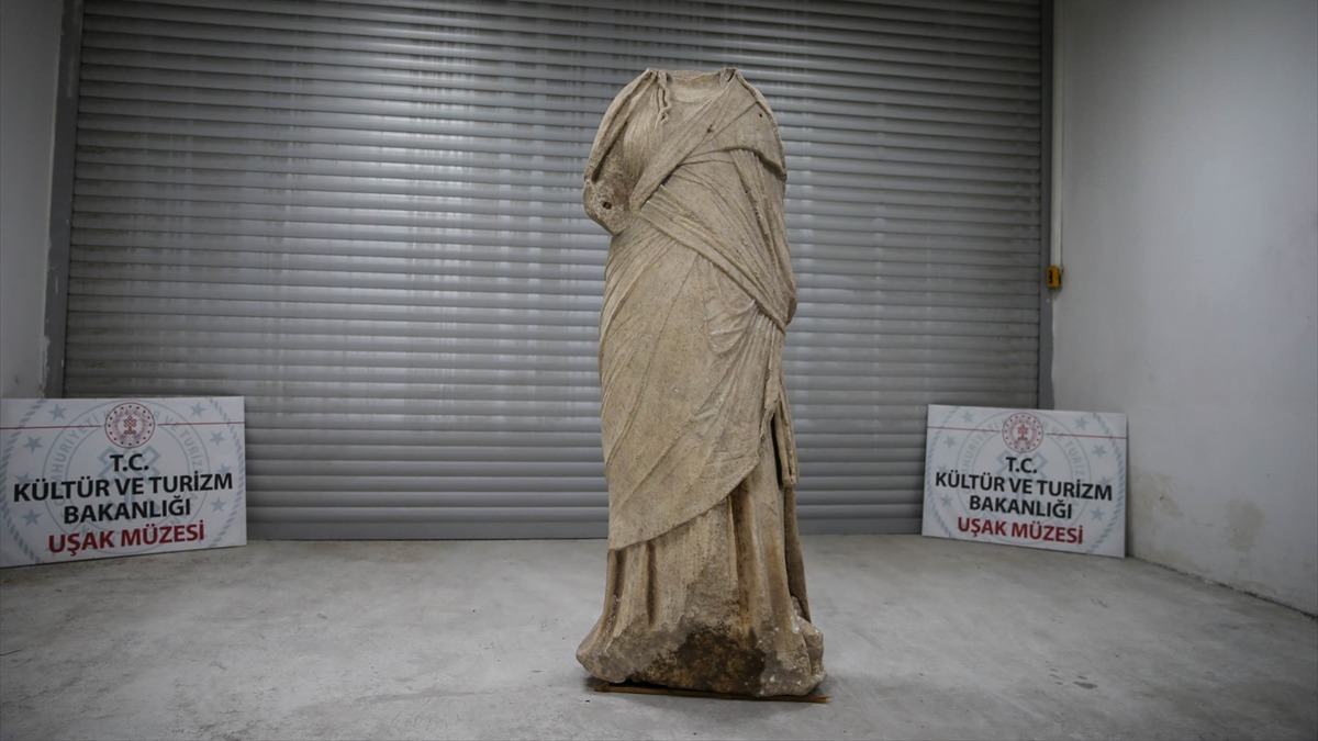 Yaklaşık 1,5 metre derinlikten gün yüzüne çıkartılan, başı ve kolları olmayan heykelin erken Roma dönemine tarihlendiğini aktaran Ceylan, 190 santimetre boyundaki heykelin Uşak Arkeoloji Müzesi'nde koruma altına alındığını dile getirdi.