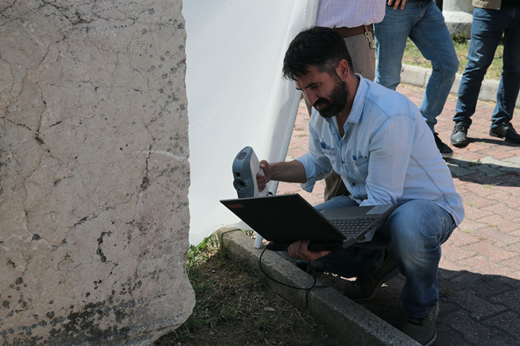 Çalışma kapsamında büyük kısmı Roma dönemine ait taş sütun ve kemer gibi eserlerin modelleri, üç boyutlu tarayıcılarla bilgisayar ortamına aktarılıyor.