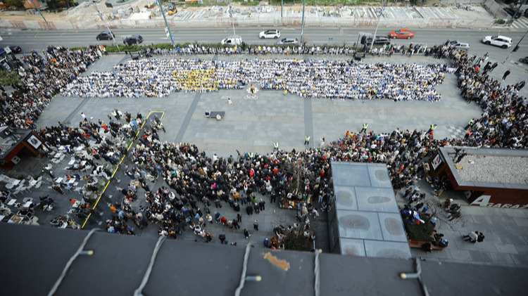 Öldürülen 1601 çocuğu temsilen aynı sayıdaki öğrenci topluluğu, şarkılar eşliğinde performanslarını sergiledi.