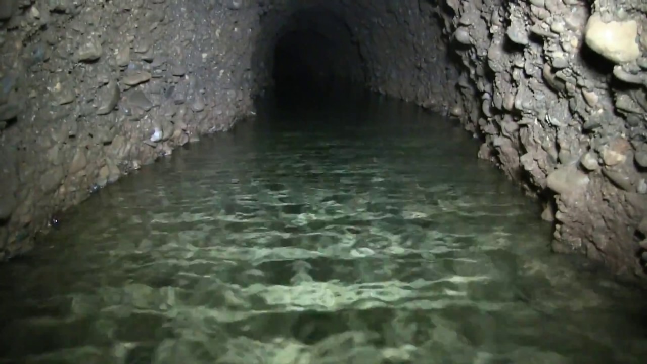Beni bunlardan birine yönlendiriyor; rahatsız edici derecede pekleşmemiş kum ve çakıl taşlarının arasından geçen, bir metre yüksekliğindeki sıkışık bir geçitten geçiyor ve turistler için iki metrelik bir caddeye (tünelin orijinal yüksekliği olduğunu iddia ediyor) doğru genişlediğini söylüyor. (Buzul çağının sonunda deniz seviyesi 1.500 feet yükseldiğinde tünelin kısmen dolduğunu söylüyor.)