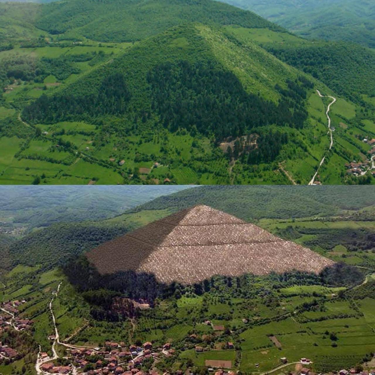 Herhangi bir piramit değil, Osmanagic'in Ay Piramidi adını verdiği, dünyanın en büyük ve en eski basamaklı piramidi. Kasabanın karşı tarafında, Güneş Piramidi adı verilen ve Visocica Tepesi olarak da bilinen, 220 metre yükseklikte Mısır'ın Büyük Piramitlerini gölgede bırakan bir tepe beliriyor.