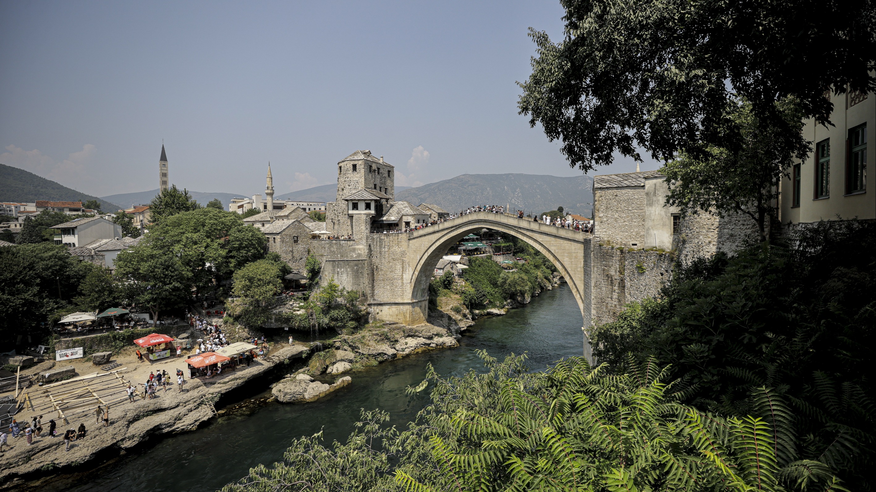 Mostar Köprüsü, iki yakasına uzanan eski Mostar şehriyle 2005'te UNESCO'nun Dünya Miras Listesi'ne eklendi.