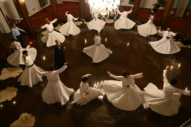 Açılış öncesi son düzenlemelerin yapıldığı Mevlevihanedeki çalışmaları inceleyen Büyükşehir Belediye Başkanı Alinur Aktaş, Bursa Mevlevihanesi için özel eğitim alan 21 semazenin sema gösterisini izledi.