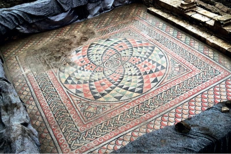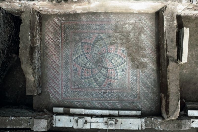 Roma özelliği taşıyan taban mozaiği, günümüzde in situ olarak bulunduğu yerde korunuyor.