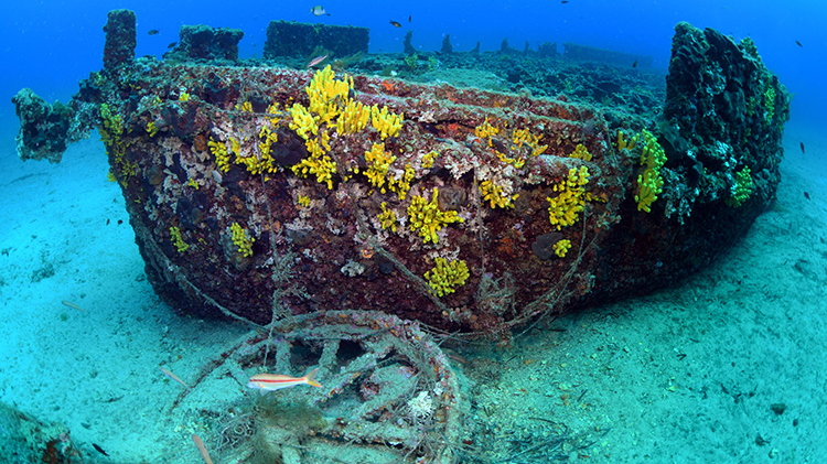 Yük ve asker taşımacılığında kullanılan İngilizlere ve Avustralyalılara ait birer gemi, 25 metre derinlikte adeta doğal bir resifi andırıyor.