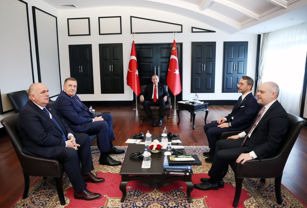 Cumhurbaşkanı Erdoğan, Antalya Diplomasi Forumu için Türkiye’de bulunan Bosna-Hersek Başkanlık Konseyi’nin Boşnak üyesi Denis Becirovic, Hırvat üyesi Zeljko Komsic ve Sırp üyesi Zeljka Cvijanovic ile Antalya’da görüştü. Cumhurbaşkanı Erdoğan görüşmede Türkiye’nin, Bosna-Hersek’in birlik, huzur ve istikrarının korunması ve iki ülke ilişkilerinin derinleştirilmesinin Türkiye için çok önemli olduğunu ve Türkiye’nin bu konularda kararlı, samimi ve yapıcı katkılarının artarak süreceğini ifade etti.