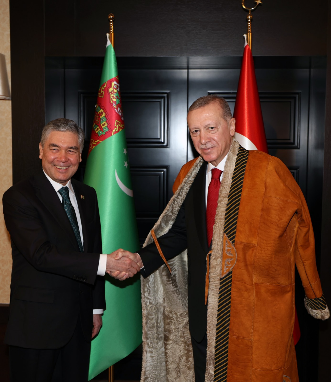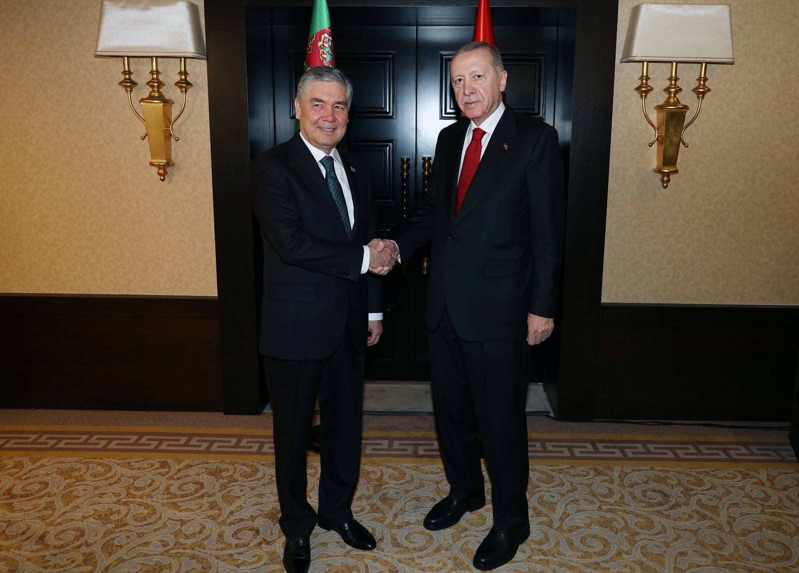 Cumhurbaşkanı Erdoğan, gerçekleştirdiği ilk görüşmede Türkmenistan Milli Lideri ve Halk Maslahatı Başkanı Gurbangulu Berdimuhammedov ile bir araya geldi. Görüşmede Türkiye ile Türkmenistan ikili ilişkileri, bölgesel ve küresel konular ile İsrail’in masum sivillere yönelik sistematik saldırıları ele alındı.