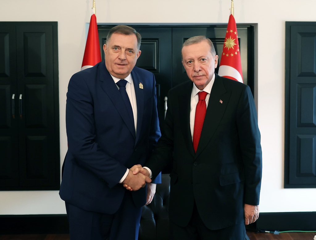 Cumhurbaşkanı Erdoğan, Antalya Diplomasi Forumu için Türkiye’de bulunan Bosna-Hersek Sırp Kesimi Başkanı Milorad Dodik ile de bir araya geldi. Görüşmede Türkiye ile Bosna-Hersek ilişkileri, bölgesel ve küresel konular değerlendirildi.