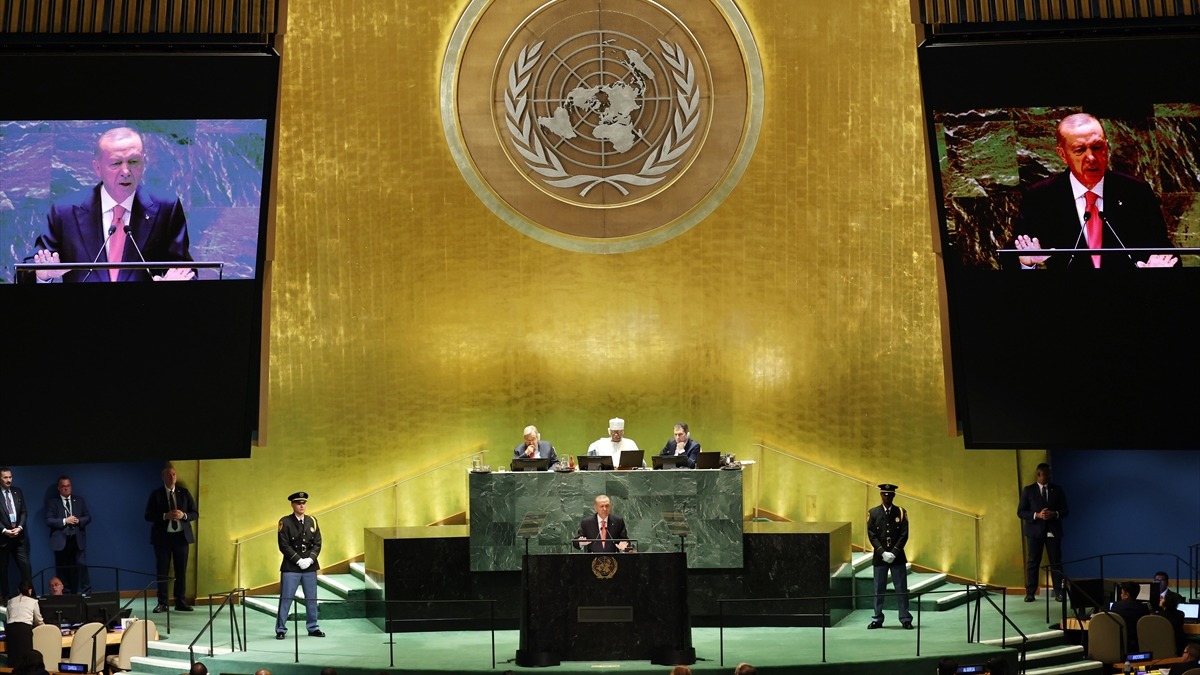 Birleşmiş Milletlerin kuruluşuyla birlikte küresel istikrara, huzura ve adalete dair beklentilerin yeniden yeşerdiğini, barış umutlarının yeniden filizlendiğini dile getiren Erdoğan, "Ancak üzülerek görüyoruz ki son yıllarda Birleşmiş Milletler kuruluş misyonunu ifa etmekte yetersiz kalıyor. Giderek işlevsiz, hantal ve atıl bir yapıya dönüşüyor. 'Dünya Beşten Büyüktür' şiarının temsil ettiği değerlere, bugünlerde daha çok daha fazla ihtiyaç duyuyoruz." dedi.
