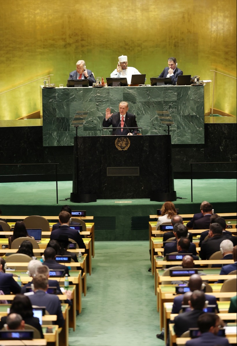 "Hayat kurtarmak için çalışan 500'ü aşkın sağlık görevlisi öldürüldü. Açlıkla, susuzlukla boğuşan Gazze halkının imdadına koşan insani yardım görevlileri, 210'dan fazla Birleşmiş Milletler personeli öldürüldü. Savaşta dahi dokunulmaması gereken 820 camiyi, 3 kiliseyi vurdular. Onlarca hastaneyi, yüzlerce okulu, hasta taşıyan 130’dan fazla ambulansı vurdular. Birleşmiş Milletler kürsüsünden 'Birleşmiş Milletler Şartı'nı parçalayarak, bir de utanmadan tüm dünyaya, vicdan sahibi tüm insanlara işte buradan, bu kürsüden meydan okudular."
