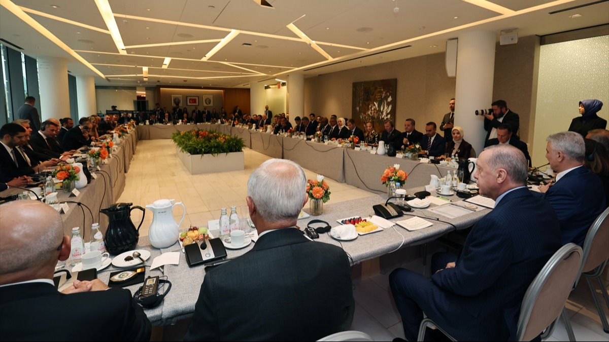 Cumhurbaşkanı Recep Tayyip Erdoğan, ABD'nin New York kentinde Amerikalı ve Türk iş insanlarıyla bir araya geldi. Erdoğan, "Güçlü bir şekilde desteklediğimiz ve son bir yıldır uygulamakta olduğumuz ekonomi programının meyvelerini topluyoruz." dedi.