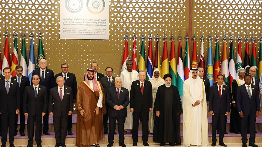 11 Kasım'da Riyad'da düzenlenen İslam İşbirliği Teşkilatı ve Arap Ligi Olağanüstü Ortak Zirvesi'ne katılmak üzere, Suudi Arabistan'a ziyarette bulunan Erdoğan, Zirve'de, "İslam dünyası olarak Filistinli kardeşlerimizi elbette sahipsiz ve çaresiz bırakamayız. Gazze'nin yeniden ayağa kaldırılması için İslam İşbirliği Teşkilatı bünyesinde bir fon kurulması gerektiğine inanıyoruz." diye konuştu.