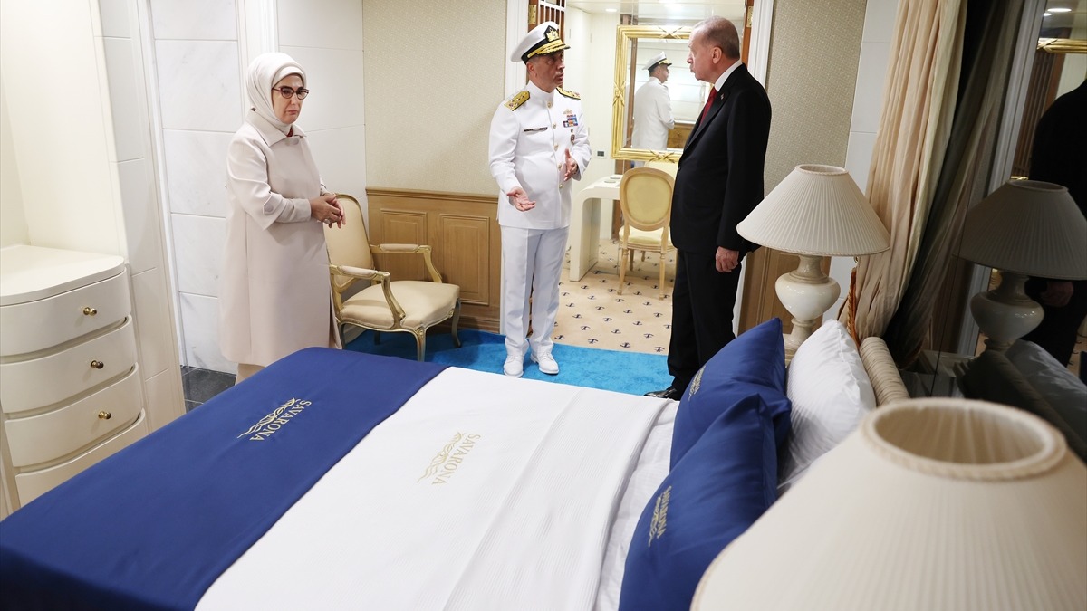 Tüm yenileme sürecini yakından takip eden Cumhurbaşkanı Erdoğan, eşi Emine Erdoğan ile tadilat sonucunu görmek için Savarona’yı ziyaret etti.
