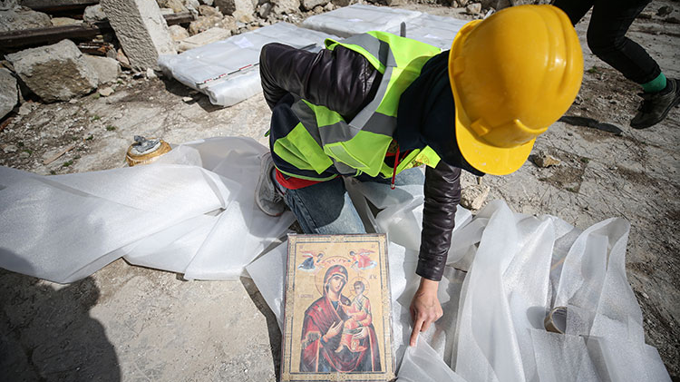 Depremde yıkılan kilisenin enkazından çok sayıda ikona ve İncil çıkarıldı