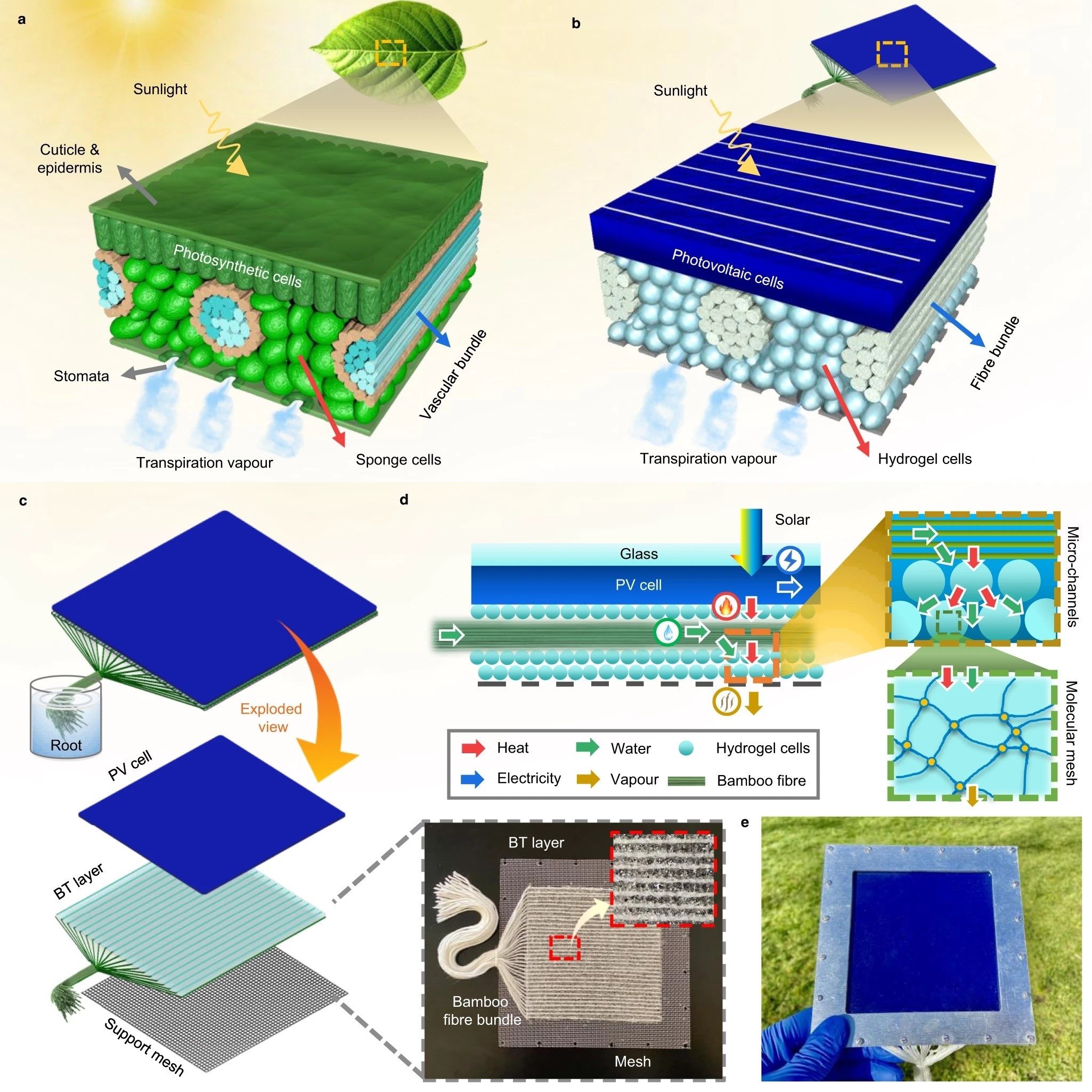 Doğal lifler yaprak damar demetlerini taklit ederken hidrojeller süngersi hücreleri taklit ediyor, böylece PV-leaf, güneş hücrelerinde oluşan ısıyı etkili ve uygun maliyetli bir şekilde uzaklaştırabiliyor.