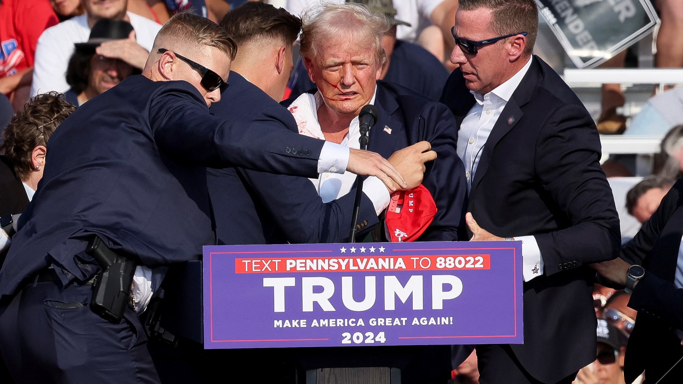 Eski ABD Başkanı Trump, saldırıda kurşunun sağ kulağına isabet ettiğini aktararak, "Ülkemizde böyle bir olayın gerçekleştiğine inanmak güç" ifadesini kullandı. Kurşun isabet ettikten sonra "bir şeylerin yolunda gitmediğini hemen anladığını" dile getiren Trump, çok fazla kan kaybı yaşadığını belirtti.