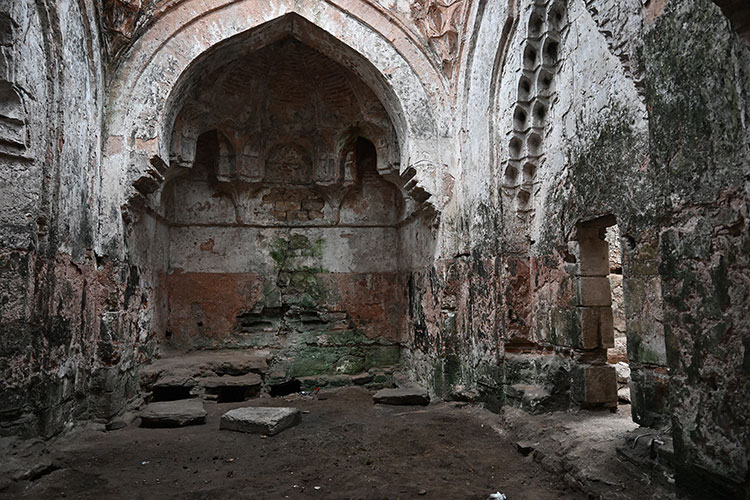Kesme taş ve tuğla malzemeden yapılan hamamın duvarları orijinal halini koruyor.