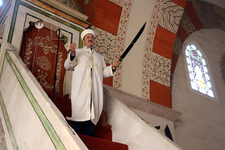 Edirne'deki Eski Cami'de imamlar 6 asırdır cuma ve bayram hutbelerine kılıçla çıkıyor