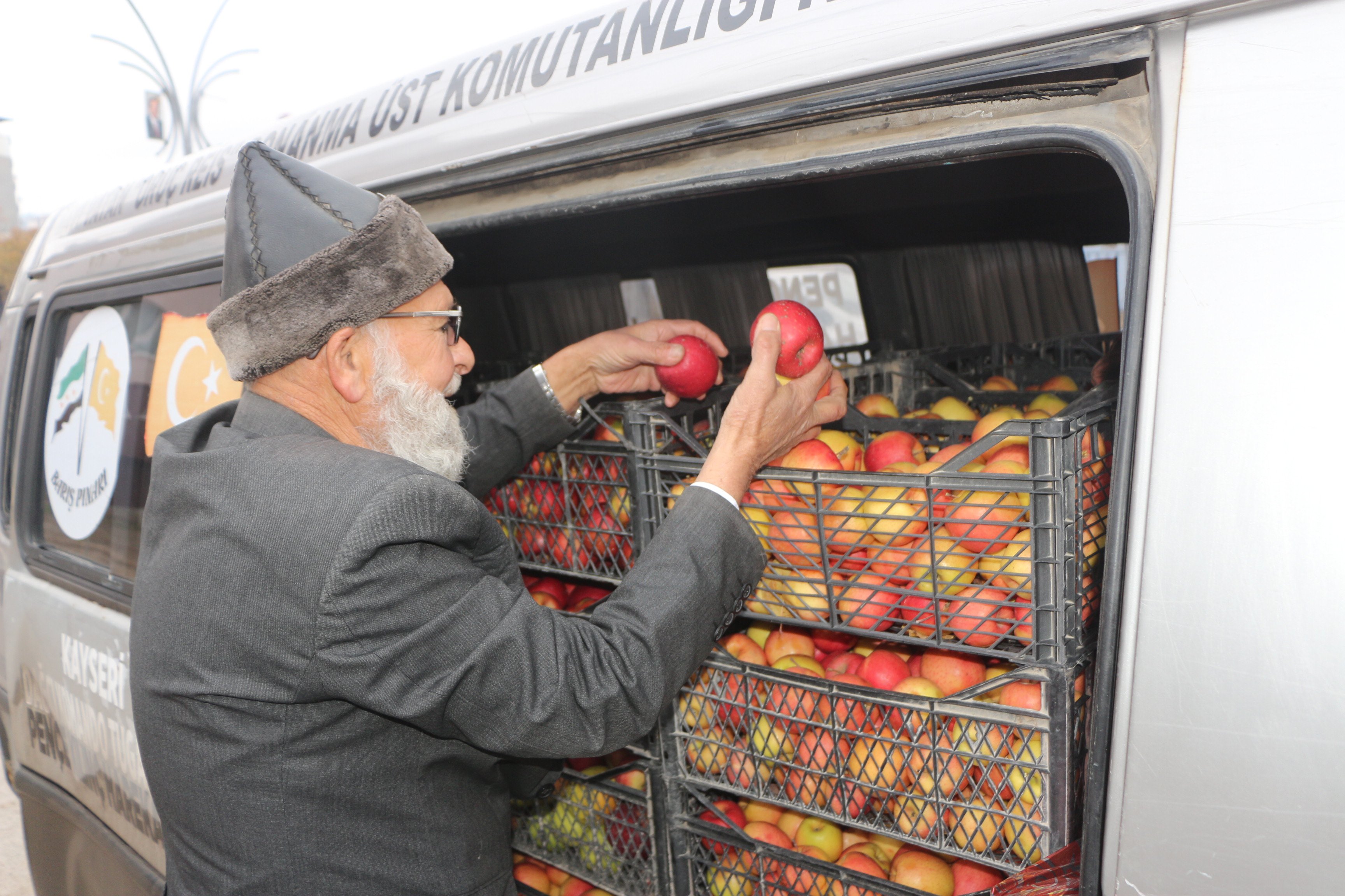 Kanser hastası Muhammet Yılmaz, bahçesinden topladığı elmaları ile askerlere manevi destek olmak için yola çıktığını belirterek, “Şırnak’tan Kuzey Irak’ta askerlerimiz var. 6 tane şehit vermiştik orada. O şehitlere taziyede bulunmak ve oradaki üs birliklerimizde kalan askerlerimize elma ikram etmek için, onların hayrına yine Şırnak’tayım. Bu Şırnak’a 6’ncı gelişim. İnşallah gelmeye devam da edeceğim.