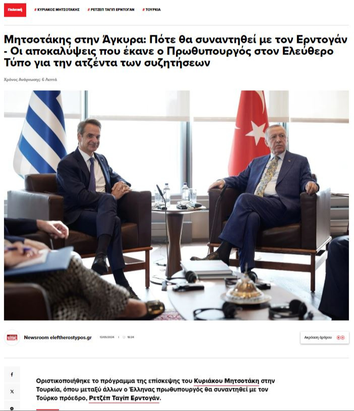 Eleftheros Typos gazetesinde de, Yunanistan Başbakanı Miçotakis'in röportajı yer aldı...